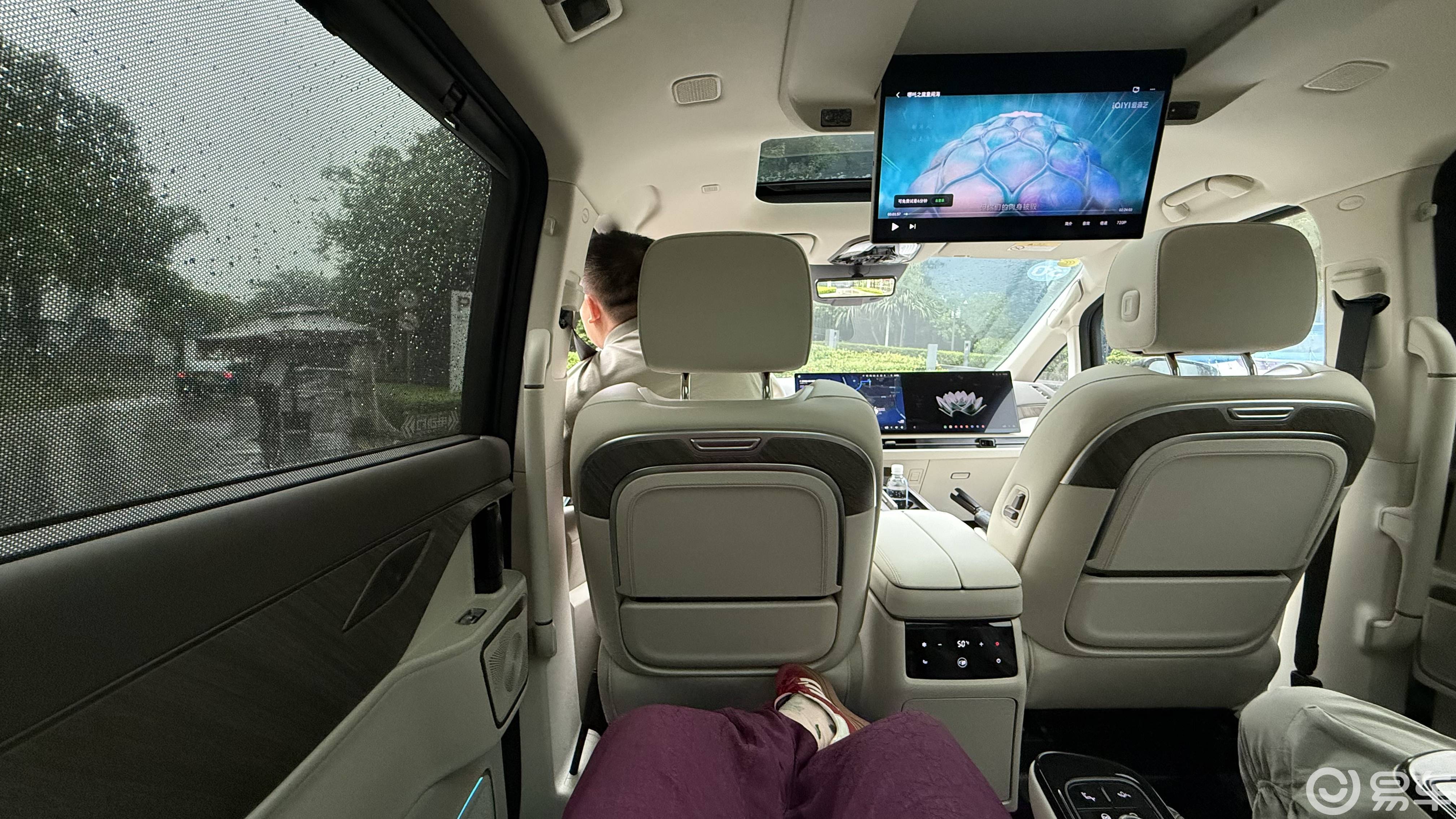 3、 二排座椅有两种:航空全包扶手座椅和招财猫扶手(活动扶手)座椅。航空座椅在感官上更高级一些,并带有零重力模式,安全带也是和座椅一体的。但在行驶过程中零重力模式无法启动,也是为安全考虑。招财猫扶手座椅没有零重力功能,但可调节角度、通风加热按摩功能都有。肯定航空座椅会更贵,而我更推荐招财猫扶手座椅,除了便宜之外,二排中央过道也会更大。航空座椅的过道很窄。