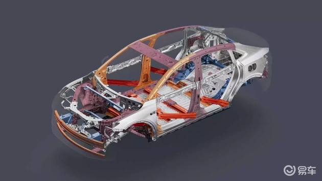 当碰撞发生时,前部防撞梁和下部的防行人卷入横梁构成了第一道防线。它们分别通过相应的纵梁、翼子板后的shotgun承接梁以及前舱下部的副车架,将溃缩吸能后剩余的巨大冲击力均匀地传递到乘员舱结构件上。乘员舱结构由高强度钢制成,坚固无比,能够将冲击力完整地传递到后部溃缩区,从而实现保护乘员舱内人员的设计目标。
