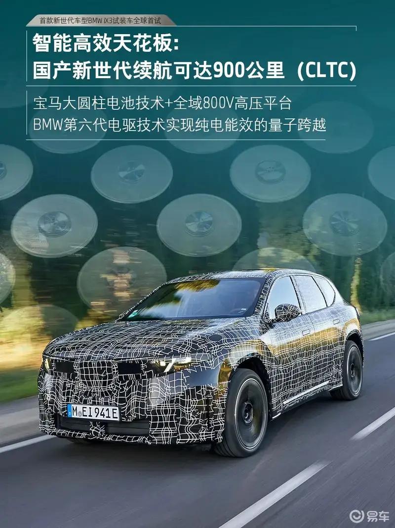 动力方面,据此前官方消息,国产全新宝马iX3采用宝马大圆柱电池技术+全域800V高压平台,第六代电驱技术实现纯电能效的量子跨越,使得国产全新宝马iX3的CLTC续航里程可达900公里。