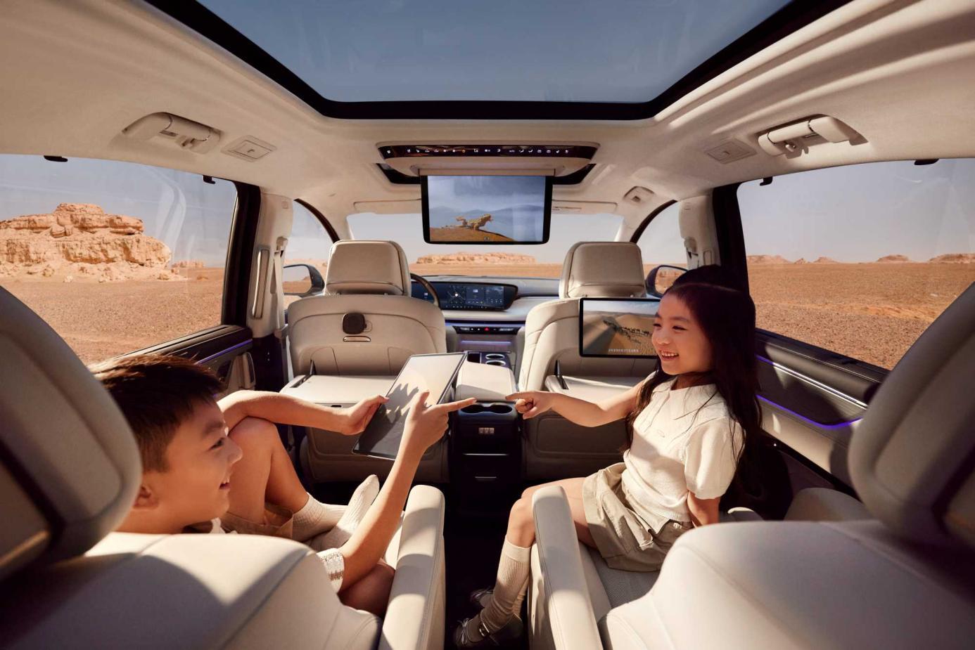 全系新增主驾座椅按摩,二排座椅升级为Nappa真皮羽感头等舱座椅,电动调节支持320mm超长行程,在原有靠背与坐垫加热的基础上,新增扶手和腿托加热,也升级了增强式指压按摩;三排座椅还加入了180度电动调节功能。