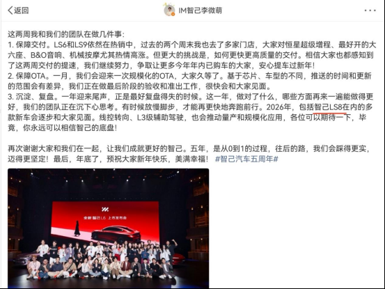 接下来我们再看看智己,就在前几天,智己高管发表的动态中就明确表示明年会推出智己LS8等多款新车,此前的工信部申报也验证了这一点。