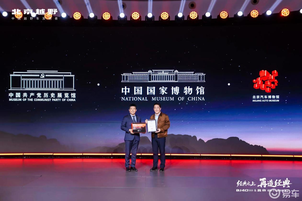 BJ40探险家入馆并入展北京汽车博物馆收藏,将在博物馆里继续讲述中国越野的故事。此前,BJ40增程作为“中国制造‘十四五’成就展”唯一的越野品类展示车,亮相中国国家博物馆;BJ80C阅兵车则被中国共产党历史展览馆荣耀典藏。至此,北京越野成为被“三馆连藏”的车企。