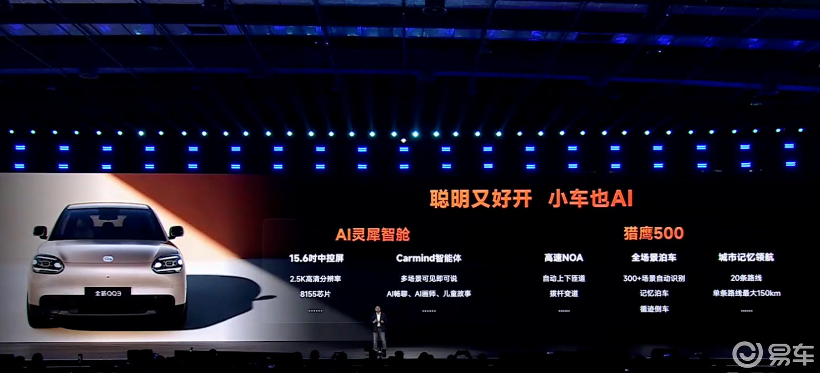 全新QQ3将是一台高质感智电轿车,奇瑞以“大小同权”理念让这台精品小车也具备高阶智能。灵犀智舱、猎鹰500驾驶辅助、B级舒享空间等配置,彻底打破人们对小型车的传统认知。