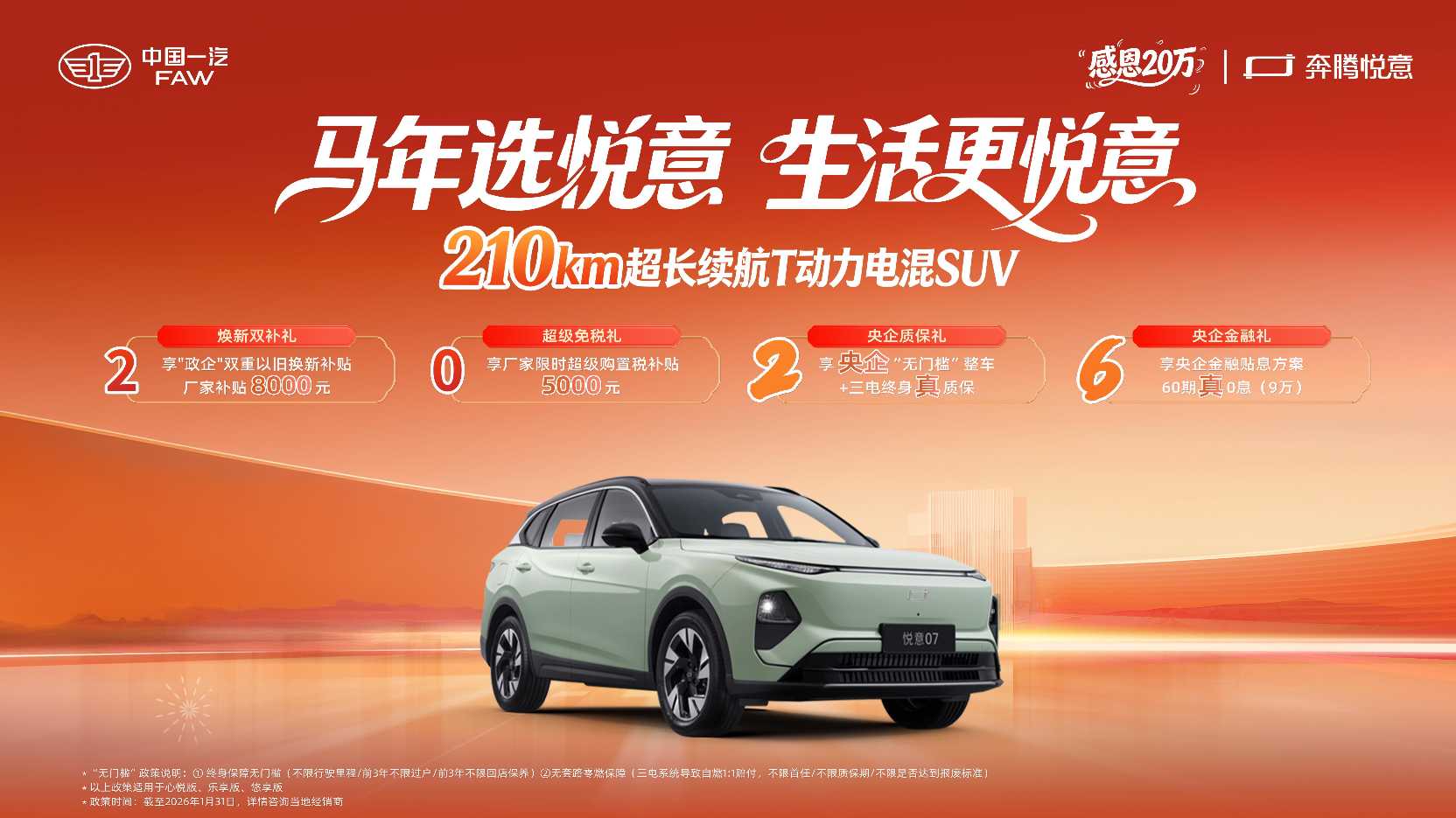 2025年的销量突破,是一汽奔腾新能源战略转型的里程碑;2026年的新年欢乐购活动,则是品牌回馈消费者、深耕新能源市场的新起点。一汽奔腾悦意03与悦意07凭借强大的产品硬实力,搭配央企四重真保障,为消费者带来了买车无忧、用车省心、养车省钱的全方位优质体验,无疑成为春节前购车的最佳选择。