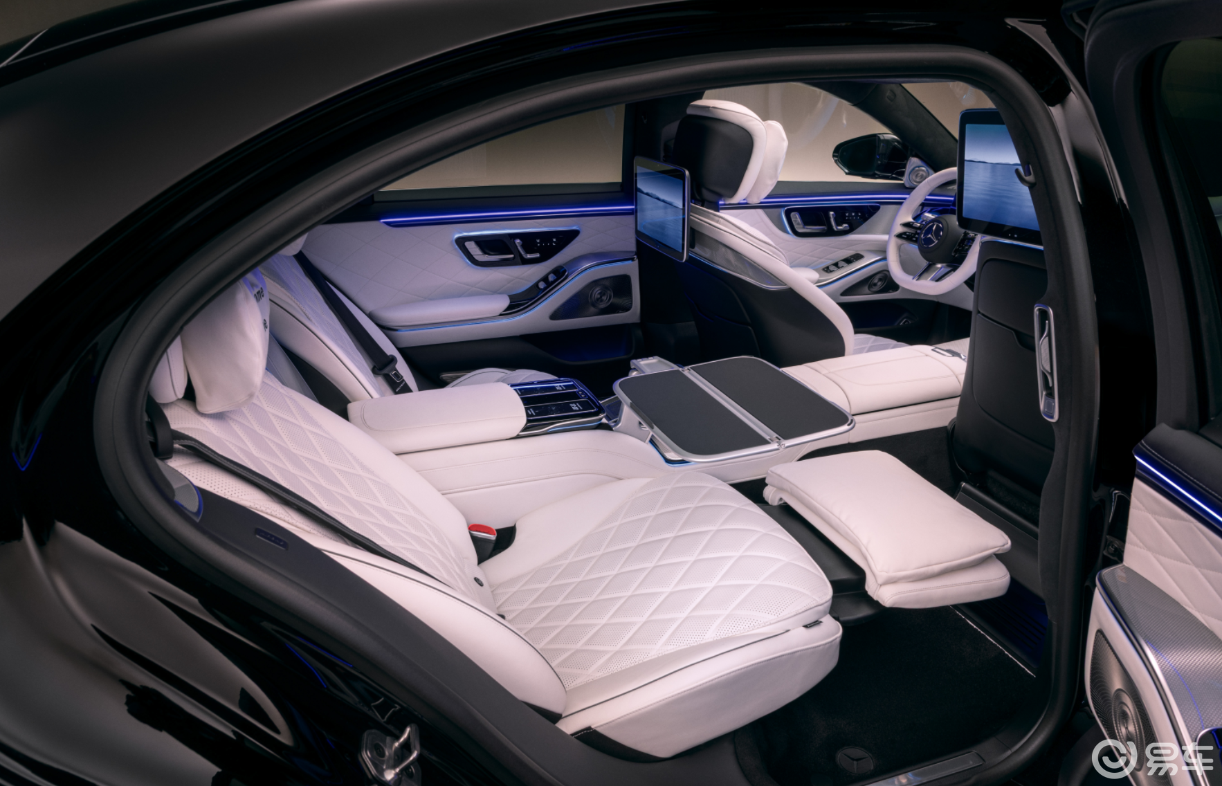 其余配置方面,前排座椅提供“热石按摩”等6种专业按摩模式、驾驶主动调节支撑,甚至还有加热式安全带。另外除五座版外,还提供四座布局可选,后排独立座椅支持最大43.5°的靠背调节以及50°的右后座腿托角度调节,再配合双13.1英寸后排娱乐屏、39扬Burmester柏林之声4D环绕立体声音响系统、双独立触控遥控器、航空式折叠小桌板等配置,乘坐舒适性与高级感不言而喻。