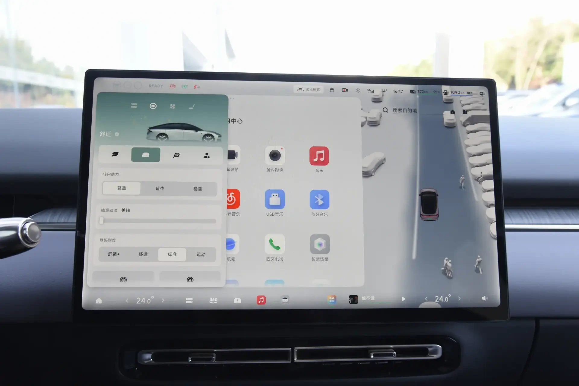 小鹏P7+则有MT8676芯片支持的天玑AIOS,拥有8.8+15.6英寸双屏与29英寸HUD抬头显示,且有20扬声器+主动氛围灯支持;在同样支持四区域交互的情况下,它多出了人脸识别响应功能,手机互联则为Carlink/HiCar,其在车机UI设计上接近平板电脑,且可实现多窗口堆叠,整体体验更现代且流畅。