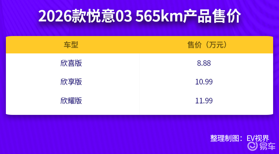仅需7.98万元起售 2026款悦意03全面焕新而来