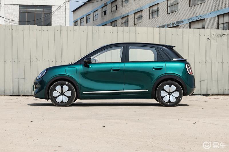 新车侧面线条比较简约,车顶与车身不同色的手法营造出悬浮车顶的效果。新车采用半隐藏式门把手设计,并配备造型时尚的花瓣形轮圈。